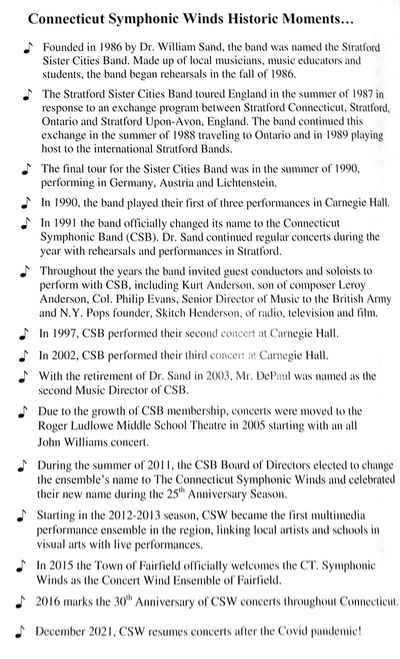 CONNECTICUT SYMPHONIC WINDS HISTORICAL MOMENTS